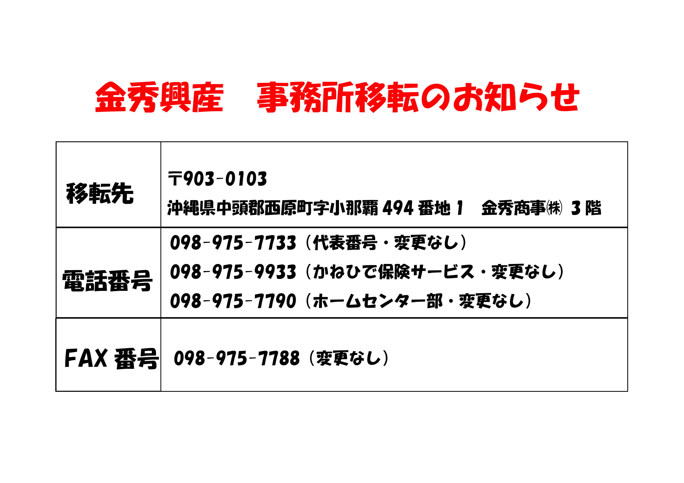 〒903-0103 沖縄県中頭郡西原町字小那覇494番地1 金秀商事㈱3階