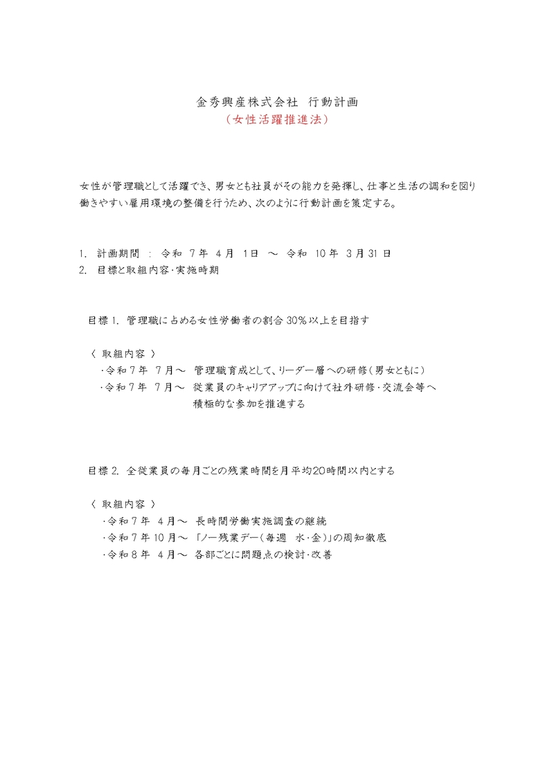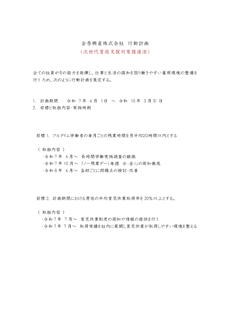 次世代育成支援対策推進法に基づく一般事業主行動計画について